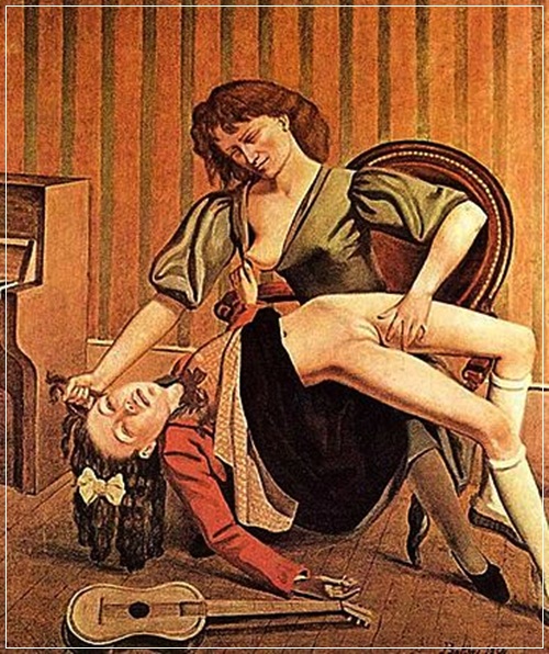 The Guitar Lesson – Balthasar Klossowski de Rola: This painting had created quite a stir by having an older woman hold a young girl in her lap as one would hold a guitar. One hand of the older woman pulled at the girl’s hair while the other was on her private parts.