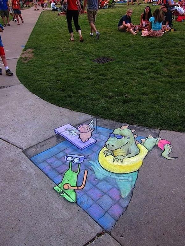 Converting the mundane to the divine: Some of these chalk art examples that are shown here have simply transformed what would have otherwise been a really mundane everyday scene into something that is divine to look upon. This transformation is simply amazing considering that only chalks have been used to create the art.