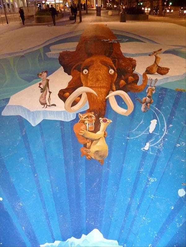 Melding reality with fantasy seamlessly: Some of these chalk art examples have taken simple and realistic elements like leaves on the street and blended into the art work in such a way that the whole thing works. As we said earlier, you really have to wonder at the way the artist thinks and the way he/she is able to blend in reality and fantasy elements so seamlessly.
