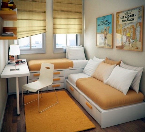 Think ship and train: In case you are finding it difficult to wrap your head around the concept of creatively making the use of the small space at your disposal, then one of the ways to get your creative juices flowing is to think in terms of the space usage in a ship or in a train compartment. Think back to the cozy and comfortable setup in a ship cabin where almost every luxury is available in the limited space and that too at a convenient reach. Once you start thinking on these lines, you will find that you are full of ideas to make a small room work for you.