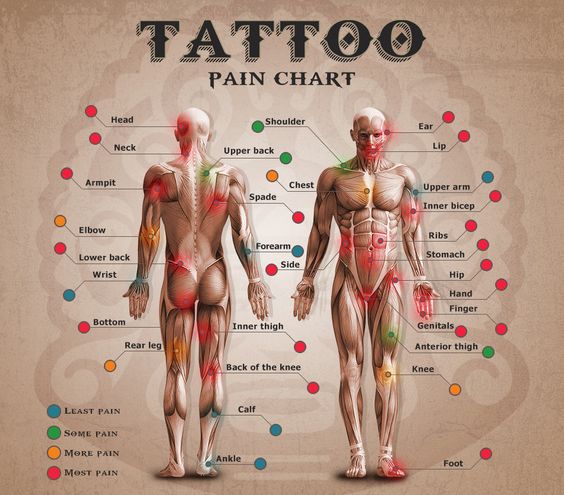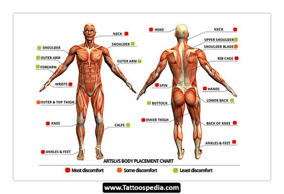 The detailed study also asked about the pain relative to the kind of equipment used like rotary or coil. Another factor you have to consider is the artist’s skill and some artists are known to be magical with a light touch that only pains for a while and that too lightly. According to this tattoo enthusiast and the chart he has made for the painful spots to get a tattoo, the ones that may pain the least are the upper arm, wrist, calf, forearm and ankle, which could be the way bones and skin is arranged there.