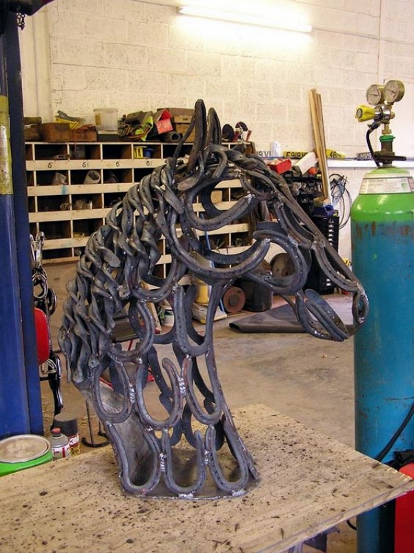 And if you have horseshoes you have lost count of, and Christmas is approaching, make some nice art with a Christmas tree made of horseshoes. You will need a base and a frame to attach the horseshoes to. People will queue up outside your garden to take a look at this one!