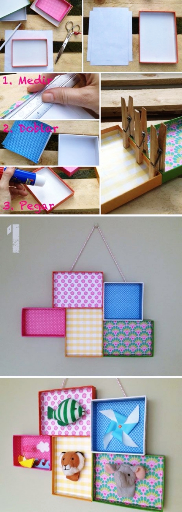 Take a piece of cardboard and create a simple border. Now, attach threads connecting both the ends, as many as you want according to the size of the photo frame. Use clips to hang pictures on the thread and you’re done.