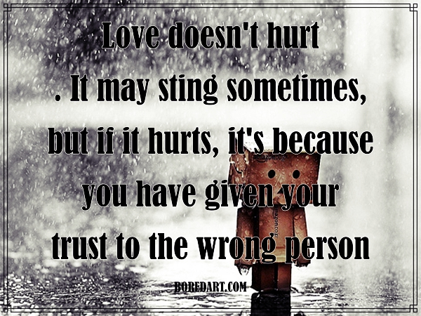• Love doesn’t hurt. It may sting sometimes, but if it hurts, it’s because you have given your trust to the wrong person